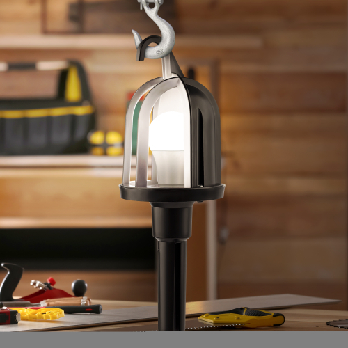 Светильник переносной под лампу с цоколем E27 (рабочая лампа). Предназначен для внутреннего освещения жилых и общественных помещений. Рассчитан для работы в сети переменного тока с номинальным напряжением 250 В и частотой 50 Гц. Максимальная мощность для лампы накаливания 60 Вт. Специальный подвесной крюк позволяет надежно закрепить светильник в момент эксплуатации, что делает его удобным для применения в гаражах или других подсобных помещениях.