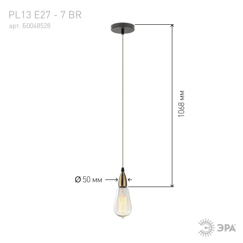 Светильник подвесной PL13 E27 - 7 BR является универсальным источником света, легко монтируется и демонтируется в потолок. Создает неповторимый дизайн и уют в помещении. Подходит для спален, гостинной, столовой и других комнат. Цоколь для источника света E27, напряжение питания 220В ~50/60Гц, материал алюминий, цвет светильника медь, размер плафона H45*D88+1000 длинна провода, максимальная мощность лампы 50 Вт, степень защиты IP20