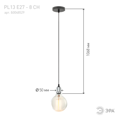 Светильник подвесной PL13 E27 - 8 CH является универсальным источником света, легко монтируется и демонтируется в потолок. Создает неповторимый дизайн и уют в помещении. Подходит для спален, гостинной, столовой и других комнат. Цоколь для источника света E27, напряжение питания 220В ~50/60Гц, материал алюминий, цвет светильника хром, размер плафона H50*D107+1000 длинна провода, максимальная мощность лампы 50 Вт, степень защиты IP20