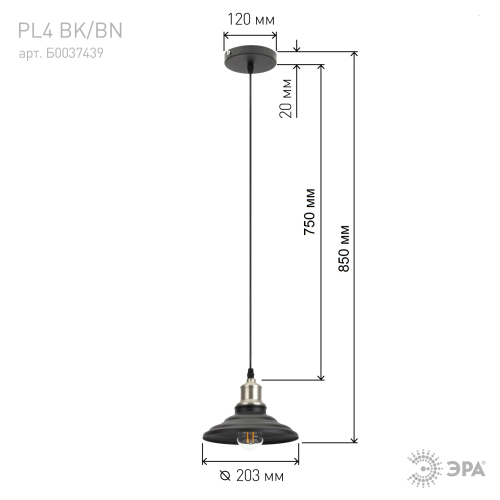 Подвесной светильник PL4 BK/BN компании Эра отлично дополнит интерьер в стиле модерн, хай-тек или лофт. Он выполнен из практичного металла универсального черного цвета. Светильник имеет цоколь Е27, подходит для лампы накаливания 60 Вт внутри помещений. Модель имеет диаметр 20 см, но благодаря длинному подвесу и изогнутой форме плафона освещение будет достаточным, а атмосфера помещения особенно уютной. Светильник станет стильным дополнением интерьера в столовой, на кухне, в коридоре, офисных помещениях. Особенно эффектно данная модель будет смотреться в обеденной зоне.