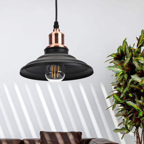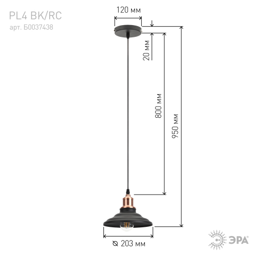 Подвесной светильник PL4 BK/RC компании Эра дополнит собой интерьер в стиле лофт, модерн или хай-тек. Он выполнен из практичного металла медного цвета с эффектной золотистой вставкой. Светильник имеет цоколь Е27, подходит для лампы накаливания 60 Вт внутри помещений. Модель имеет средние размеры, но благодаря длинному подвесу и форме плафона в стиле ретро освещение будет достаточным, а атмосфера помещения уютной. Светильник органично впишется в интерьер кухни, столовой, коридоров, дачных веранд или офисных помещений. Особенно эффектно данная модель будет смотреться над обеденным столом, создавая неповторимую атмосферу.