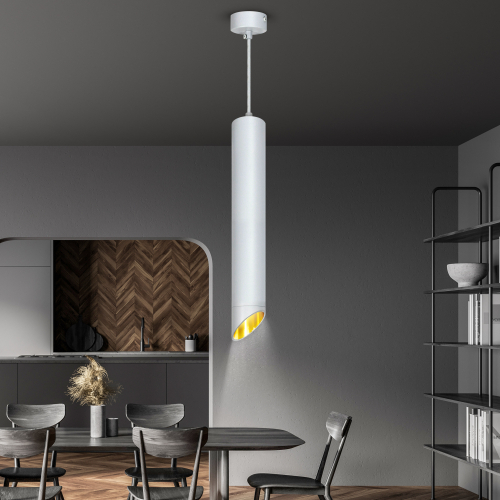 Подвесной светильник PL17 WH создает неповторимый дизайн и уют в помещении. Подходит как для спален, так и для гостинной, столовой, прихожей комнаты. Выполняет не только осветительную функицию, но и является элементом декора. Подвесные светильники – это ультрамодный тренд, часто используемый дизайнерами. Цоколь для источника света GU10, напряжение питания ~230В 50/60Гц, материал алюминий, цвет светильника белый, размер D55*H330мм, максимальная мощность лампы 12Вт, степень защиты IP20