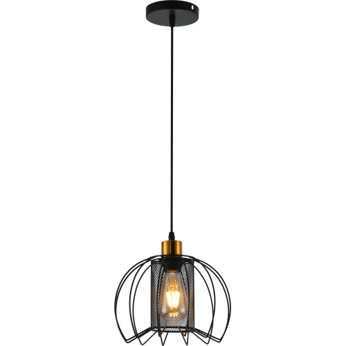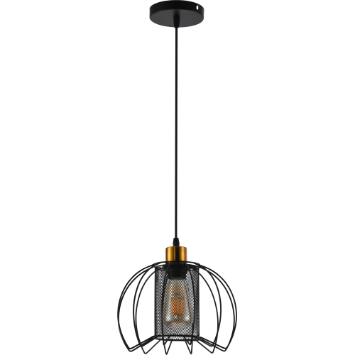 Серия металлических подвесов в цвете чёрный + латунь с оригинальными плафонами-сетками — стильный акцент для лофтовых и современных интерьеров. Модели на 1 и 3 лампы с цоколем E27 (макс. мощность — 60 Вт, лампы не входят в комплект). Регулируемая высота подвеса обеспечивает удобную установку под любые параметры помещения.