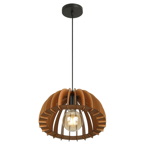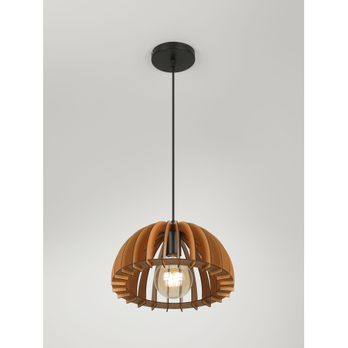Серия чёрных подвесов с деревянным абажуром на 1 лампу — идеальное сочетание лофт-эстетики и натуральных материалов. Доступны варианты из светлого и чёрного дерева. Подходит лампа с цоколем E27, мощностью до 60 Вт (лампа в комплект не входит). Высота светильника регулируется для удобного размещения в любом пространстве.