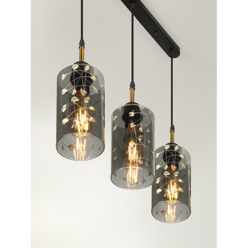 Серия подвесных светильников в цвете чёрный + латунь с элегантными дымчатыми плафонами — стильный выбор для современного интерьера. Доступны модели на 1 и 2 лампы с цоколем E27 (макс. мощность — 60 Вт, лампы в комплект не входят). Регулируемая высота позволяет легко настроить светильник под особенности помещения.