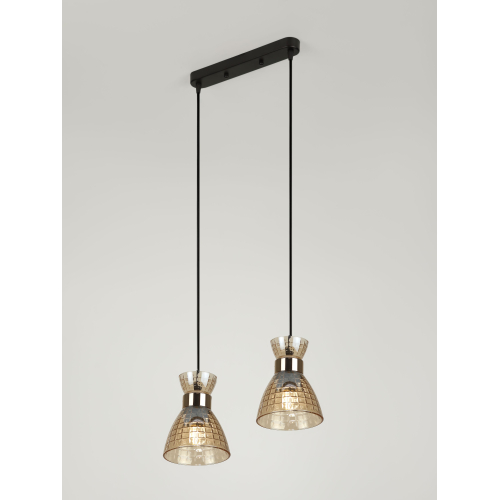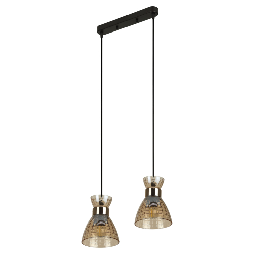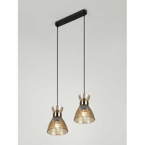 Серия подвесных светильников в стильном сочетании чёрного и золотого цветов с тонированными плафонами — элегантное решение для современного интерьера. Модели на 1, 2 и 3 лампы с цоколем E27 (макс. мощность — 60 Вт, лампы в комплект не входят). Регулируемая высота подвеса позволяет легко адаптировать светильники под любую планировку.
