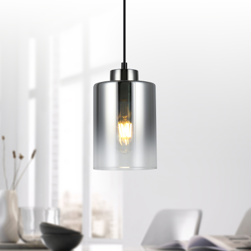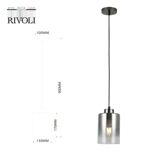 Светильник подвесной (подвес) Rivoli (арт. 9322-201) под лампу Е27 40 Вт. Подвесная люстра на тросе изготовлена из металла и стекла. Цилиндрический плафон люстры подвесной отличает тонировка красивого дымчатого оттенка. Основной цвет светильника-подвеса – чёрный. Дизайнерские светильники подвесные на тросах от итальянского бренда Rivoli созданы в стиле модерн. Такие подвесы над столом помогают качественно подсветить столешницы, зонировать пространство и расставить акценты в интерьере. Подвесные светильники для кухни, подвесные светильники в спальню Rivoli применяются с лампой Е27 40 Вт. Подвесные светильники на тросах регулируются по высоте при монтаже на потолок.