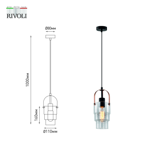 Дизайнерский светильник потолочный подвесной Rivoli Christina (арт. 4110-201) для интерьеров в стиле лофт, кантри, модерн, скандинавский, ретро. Основной цвет светильника подвесного – чёрный, декоративные детали – цвета меди. Трендовое сочетание оттенков и оригинальная композиция плафона делают этот светильник подвесной дизайнерский прекрасным решением для преображения пространства и расстановки стилевых акцентов. Лампа для данного подвеса – Е27 40 Вт. Лучшим решением станет филаментный источник света в ретро-стилистике. Рекомендуем купить лампочку в удлинённой колбе. Высоту светильника подвесного дизайнерского легко отрегулировать при монтаже подвеса на потолок.
