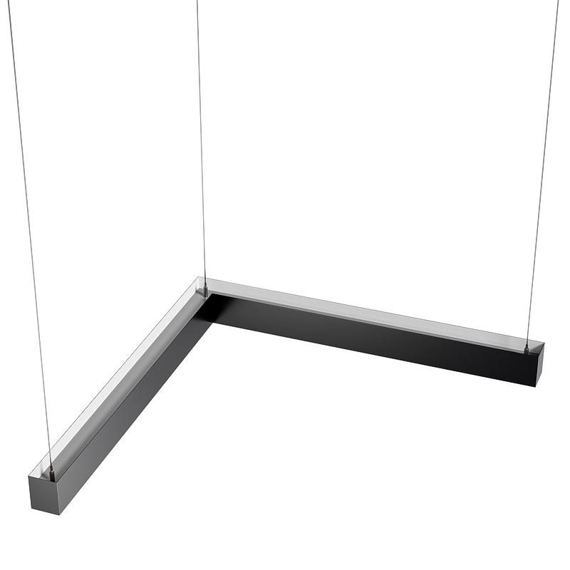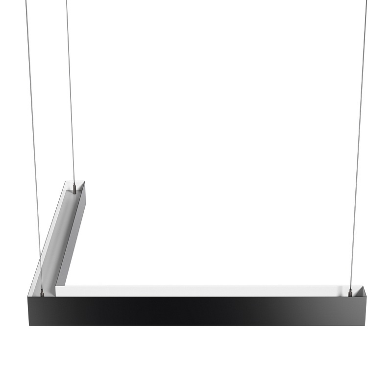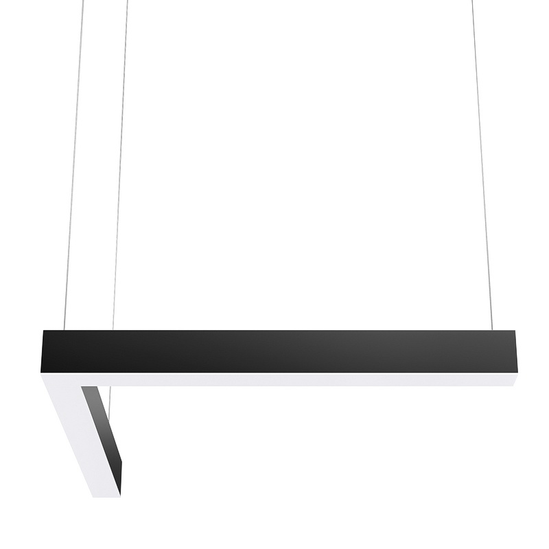 Партия данных светильников в форме "Г" выполняется под заказ в нужных вам размерах. Корпус может быть выполнен в черном, белом и сером цветах. Цветовая температура на выбор: теплый цвет (3000К), нейтральный (4000К-5000К) или холодный (6500К). Материал корпуса – металл. Тип крепления – подвесной.