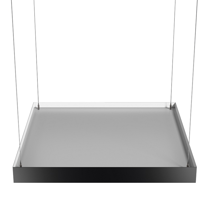 Корпус больших квадратных светильников может быть выполнен в черном и белом цвете. Цветовая температура на выбор: теплый цвет (3000К), нейтральный (4000К) или холодный (6500К). Материал корпуса – металл, размеры на выбор. Вариант монтажа – подвесной или накладной. Размеры, форму и мощность можно выбрать, так как модель изготавливается на заказ.