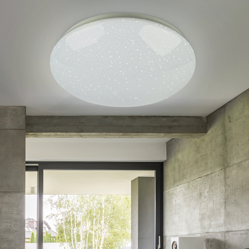 Люстра оснащена светодиодом с нейтральным белым свечением. Кроме того, за счет равномерного светового потока и рассеивателю из акрила Ваши глаза не будут уставать. Цветовая температура 4000 К. Светильник оснащен режимом "ночное небо".