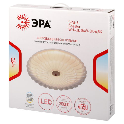 Светодиодный светильник ЭРА SPB-6 Chester 84W-3K-6,5K WH+GD – современное решение для общего освещения жилых и коммерческих помещений.