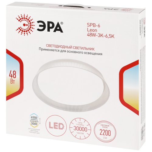 Светодиодный светильник ЭРА SPB-6 Leon 48W-3K-6,5K – современное решение для общего освещения жилых и коммерческих помещений.