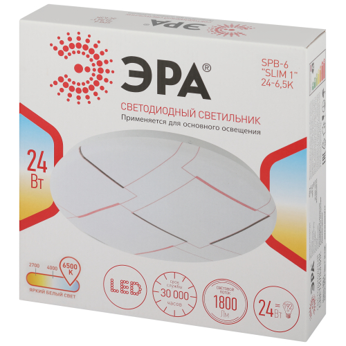 Потолочный светильник SPB-6 "Slim 1" 24-6K от бренда ЭРА идеально впишется в любой интерьер. Стальной корпус светодиодной люстры обладает противоударными свойствами и отделан глянцем. Электросветильник оснащён светодиодами с холодно-белым свечением. LED светильник имеет мощность 24 Вт и равномерное светораспределение. Плафон потолочной люстры выполнен из матового пластика, защищающего от воздействия прямого света. Рассеиватель отличается особым дизайном.