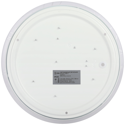 Плафон потолочной люстры выполнен из матового пластика, защищающего от воздействия прямого света. Рассеиватель имеет неповторимый дизайн: декоративный узор серебряного цвета изящно дополняет круглый плоский корпус. Это позволяет использовать SPB-6 "Slim 2" 24-4K в качестве освещения для кухни, прихожей или гостиной.