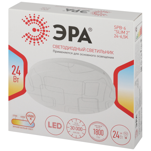 Потолочный светильник SPB-6 "Slim 2 " 24-6K от бренда ЭРА идеально впишется в любой интерьер. Стальной корпус светодиодной люстры обладает противоударными свойствами и отделан глянцем. Электросветильник оснащён светодиодами с холодно-белым свечением. LED светильник имеет мощность 24 Вт и равномерное светораспределение. Плафон потолочной люстры выполнен из матового пластика, защищающего от воздействия прямого света. Рассеиватель отличается особым дизайном.