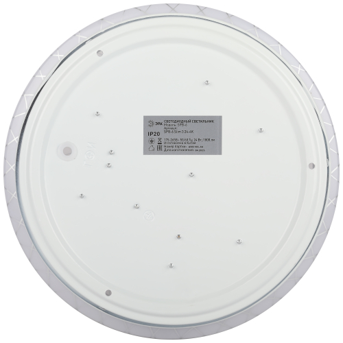 Плафон потолочной люстры выполнен из матового пластика, защищающего от воздействия прямого света. Рассеиватель декорирован блестящим узором, напоминающим солнце. Неповторимый дизайн идеально гармонирует с круглым плоским корпусом светильника и создает атмосферу уюта. Это позволяет использовать SPB-6 "Slim 3" 24-4K для освещения прихожей, гостиной или спальни.