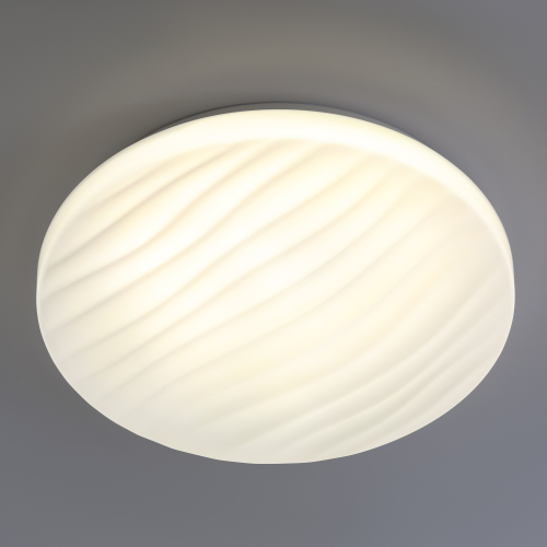 Потолочную люстру отличает неповторимый дизайн плафона. Рельефная декорация в сочетании с круглым плоским корпусом создает ощущение движения воды. Электросветильник SPB-6 "Slim 4" придаст свежести интерьеру спальни, гостиной или коридора.