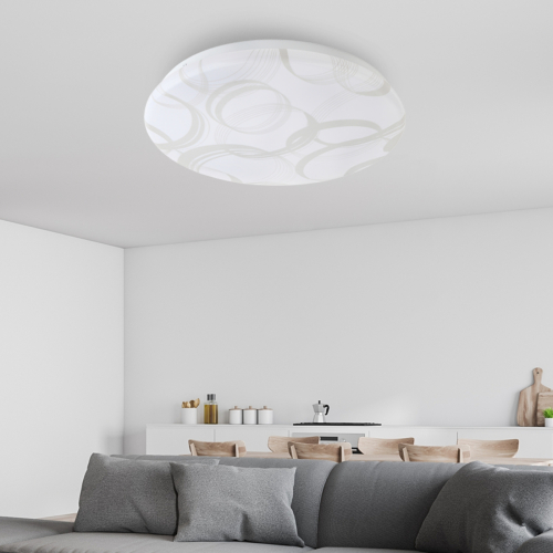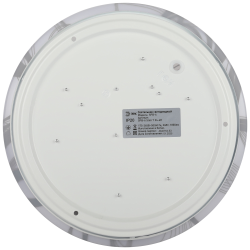 Дизайн рассеивателя заслуживает особого внимания: геометричный узор из колец серебристого цвета идеально гармонирует с круглым плоским корпусом. Это позволяет использовать SPB-6 "Slim 7" для потолочного освещения кухни, спальни или гостиной.