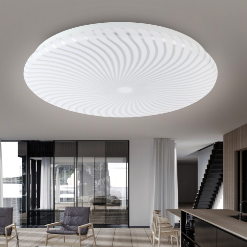 Рассеиватель имеет эксклюзивный дизайн: геометричный узор серебристого оттенка изящно гармонирует с круглым плоским корпусом. Это позволяет использовать SPB-6 "Slim 8" в качестве освещения для кухни, спальни или гостиной.