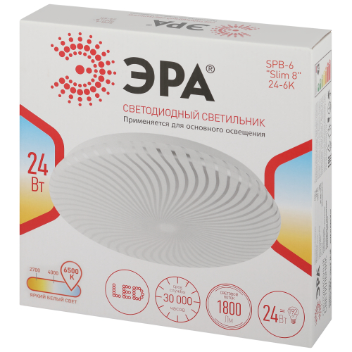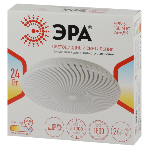 Потолочный светильник SPB-6 "Slim 8" мощностью 24 Вт от бренда ЭРА в нежном белом оттенке надежно впишется в любое дизайнерское решение!