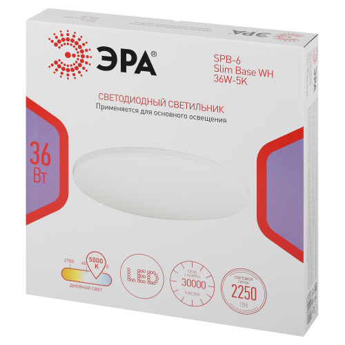 Светодиодный светильник ЭРА SPB-6 Slim Base WH 36W-5K – современное решение для общего освещения жилых и коммерческих помещений.