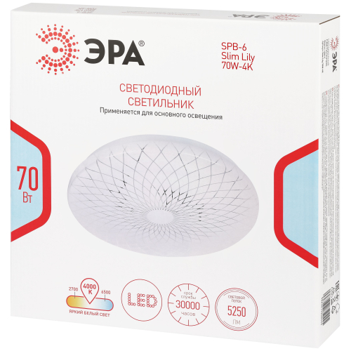 Светодиодный светильник ЭРА SPB-6 Slim Lily 70W-4K — современное и функциональное решение для освещения жилых и коммерческих помещений.