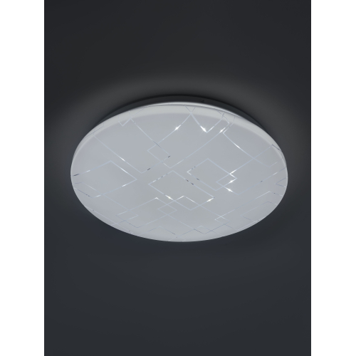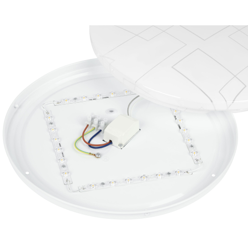 Компактные размеры 325×55 мм позволяют устанавливать светильник даже в помещениях с низкими потолками. Степень защиты IP20 делает его идеальным для сухих интерьеров. Геометрический узор на плафоне мягко подсвечивается при включении, создавая лёгкий декоративный эффект.