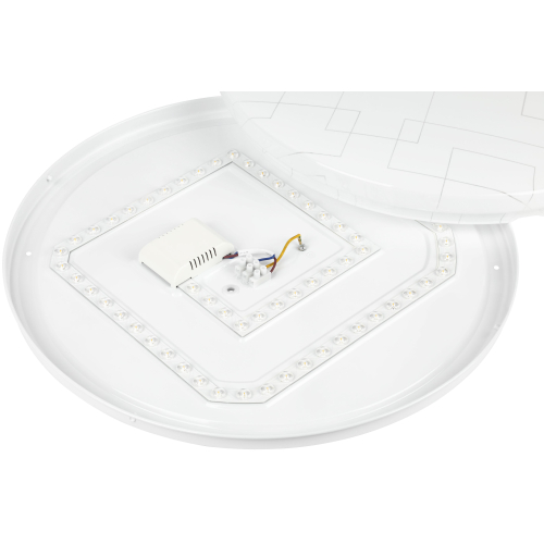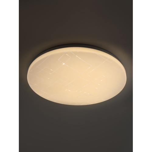 Компактные размеры 468×60 мм позволяют устанавливать светильник даже в помещениях с низкими потолками. Степень защиты IP20 делает его идеальным для сухих интерьеров. Геометрический узор на плафоне мягко подсвечивается при включении, создавая лёгкий декоративный эффект.