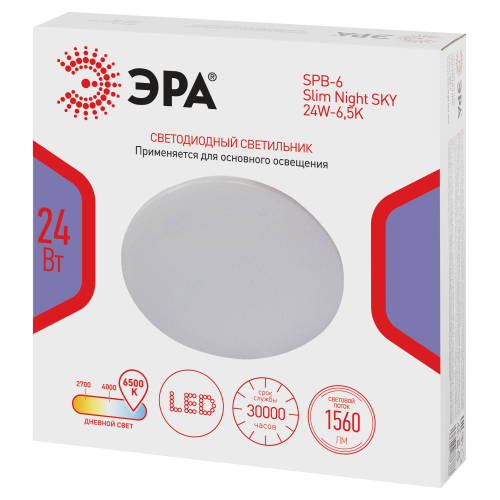 Светодиодный светильник ЭРА SPB-6 Slim Night SKY 24W-6,5K – современное решение для общего освещения жилых и коммерческих помещений.