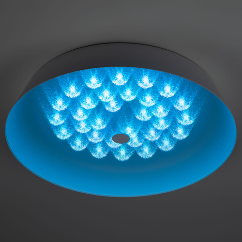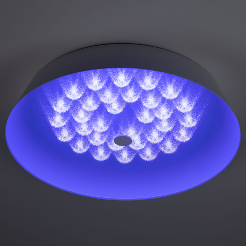 Накладной потолочный светильник LOCUS RGB. Модель подойдет для создания основного освещения в помещении. Светильник комплектуется современным призматическим рассеивателем, придающим ему футуристичный вид за счет 3D эффекта, и защищающим от ослепления светом. В комплекте поставки есть пульт ДУ, с помощью которого можно настраивать яркость, цветовую температуру, а также управлять режимами RGB подсветки.