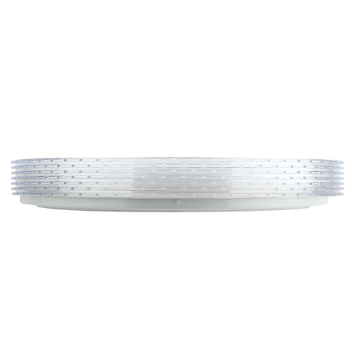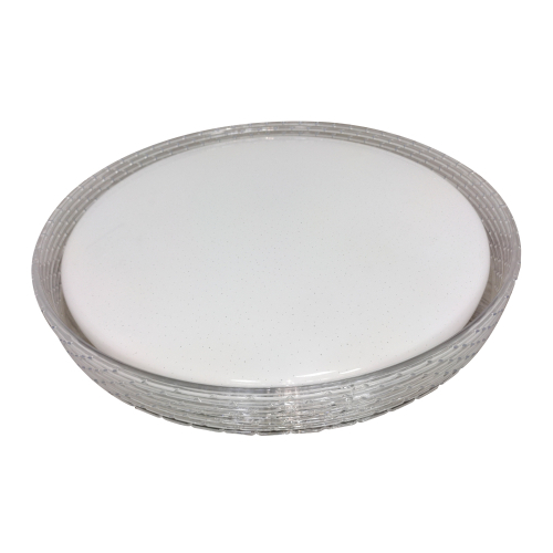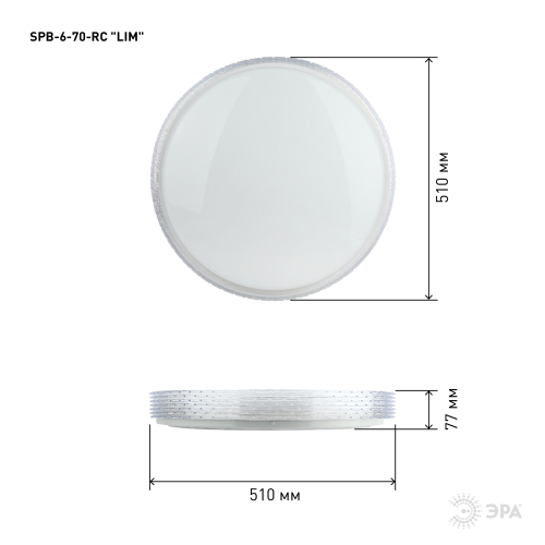 Светильник светодиодный потолочный ЭРА SPB-6-70-RC серии LIM отличается возможностью регулирования яркости светового потока и цветовой температуры. Пульт дистанционного управления имеет крупные кнопки с подсказками, очень удобен в использовании. Светильник можно расположить в уютной гостиной и менять яркость освещения в зависимости от настроения или необходимости. Цветовая температура регулируется в пределах от 3000 К до 6000 К. Диаметр корпуса составляет 51 см. Светодиодный светильник выполнен в классическом дизайне. На стальном корпусе располагается светодиодная плата, оснащенная современным и надежным драйвером. Матовый рассеиватель имеет декор, напоминающий звездное небо, он обрамлен прозрачным элементом "под хрусталь". Подобная конструкция выглядит особенно выразительно в темное время суток, создавая уютную атмосферу с эффектным свечением вокруг корпуса лампы.