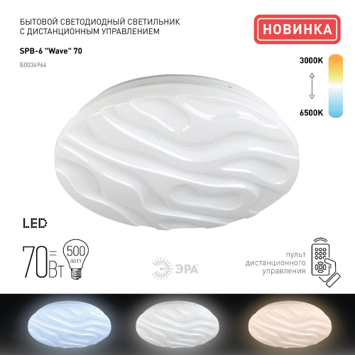 Мощность в 70 Вт и срок службы 50 000 часов подарят Вам бесперебойную работу! Потолочный светильник SPB-6 "Wave Sand" от компании ЭРА грамотное воплощение Ваших идей!