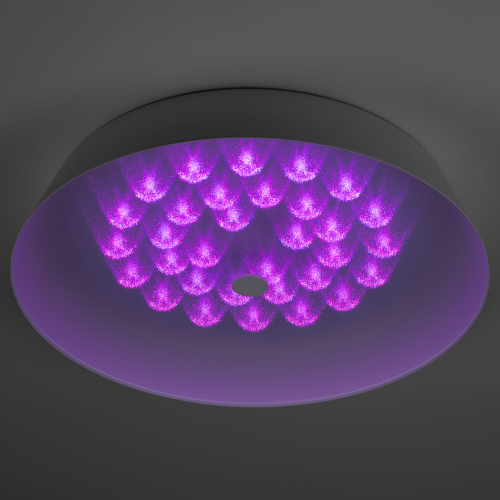 Накладной потолочный светильник LOCUS RGB. Модель подойдет для создания основного освещения в помещении. Светильник комплектуется современным призматическим рассеивателем, придающим ему футуристичный вид за счет 3D эффекта, и защищающим от ослепления светом. В комплекте поставки есть пульт ДУ, с помощью которого можно настраивать яркость, цветовую температуру, а также управлять режимами RGB подсветки.