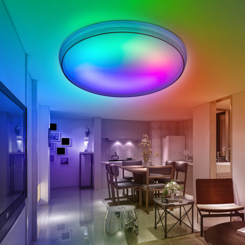 Особенностью светильника является динамическое RGB - это режим, при котором светильник меняет цвета не полностью, а частично, создавая внутри себя эффект движения.