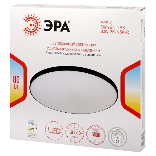 Светодиодный светильник ЭРА SPB-6 Slim Base BK 80W-3K-6,5K-R – современное решение для общего освещения жилых и коммерческих помещений.
