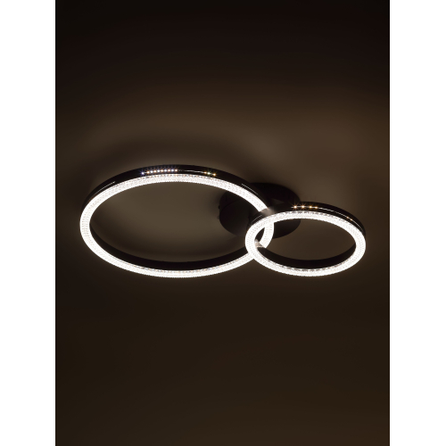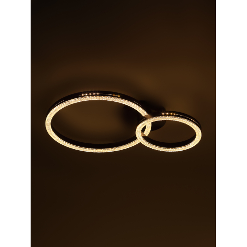 Серия потолочных светодиодных светильников-колец в элегантном чёрном цвете с рельефным акрилом сочетает современный стиль и высокую функциональность. В комплекте — пульт дистанционного управления с настройкой яркости и цветовой температуры от 3000 до 6000К. Мощность моделей от 78 до 110 Вт обеспечивает мощное и равномерное освещение для любых помещений.