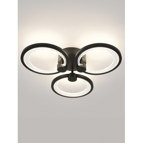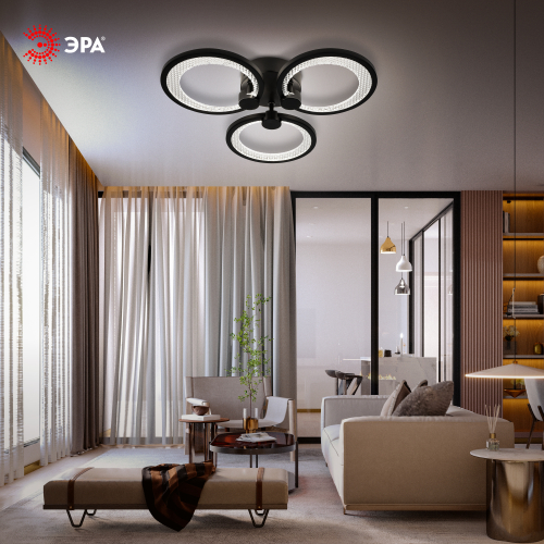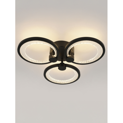 Серия потолочных светодиодных светильников-колец в стильном чёрном цвете — современное решение для уютного и функционального освещения. В комплекте пульт ДУ с регулировкой яркости и цветовой температуры в диапазоне 3000–6500К. Мощность моделей от 46 до 117 Вт позволяет выбрать оптимальный вариант для помещений любого размера.