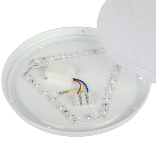Плафон потолочной люстры выполнен из матового пластика, защищающего от воздействия прямого света. Рассеиватель имеет неповторимый дизайн: декоративный узор серебряного цвета изящно дополняет круглый плоский корпус. Это позволяет использовать SPB-6 "Slim 2" 24-4K в качестве освещения для кухни, прихожей или гостиной.
