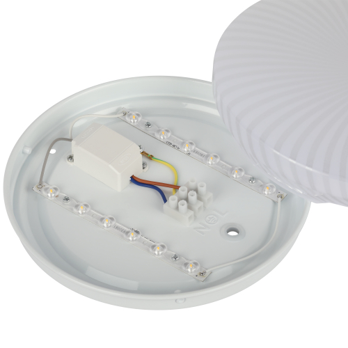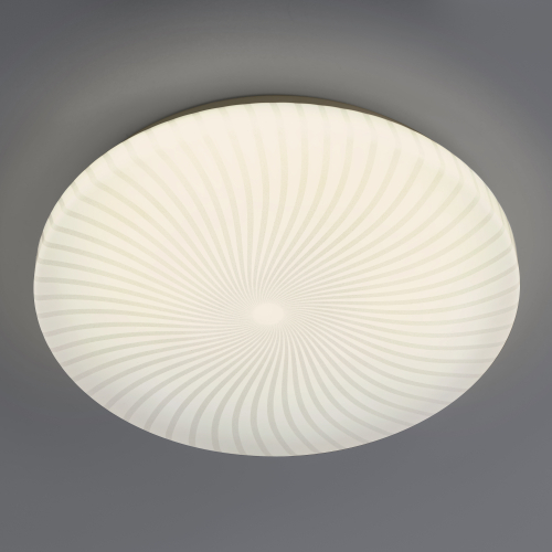Декор рассеивателя в виде динамичного поблескивающего узора идеально сочетается с круглым плоским корпусом. LED светильник идеально подойдет для детской, спальни или коридора.