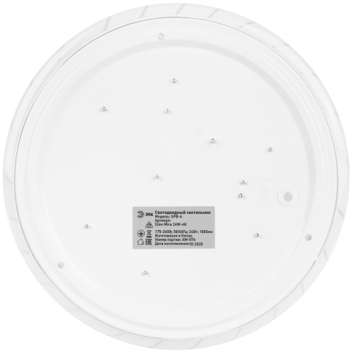 Мощность устройства составляет 24 Вт, световой поток — 1800 лм. Благодаря матовому рассеивателю свет распределяется мягко и равномерно, не создавая бликов и не утомляя глаза.