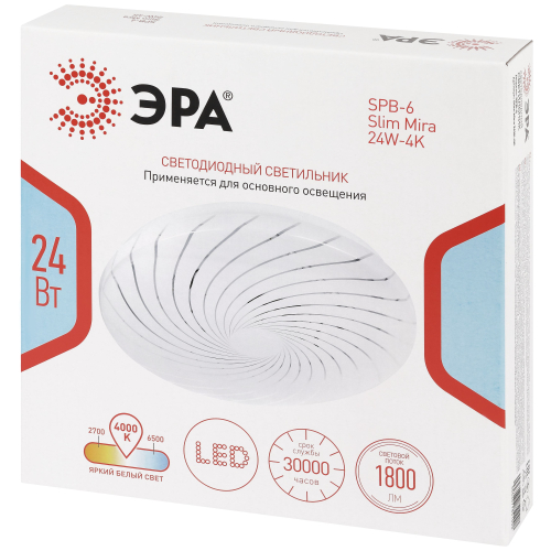 Светодиодный светильник ЭРА SPB-6 Slim Mira 24W-4K — современное и функциональное решение для освещения жилых и коммерческих помещений.