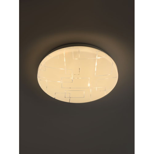 Компактные размеры 210×50 мм позволяют устанавливать светильник даже в помещениях с низкими потолками. Степень защиты IP20 делает его идеальным для сухих интерьеров. Геометрический узор на плафоне мягко подсвечивается при включении, создавая лёгкий декоративный эффект.