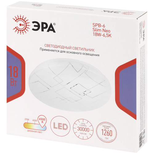 Светодиодный светильник ЭРА SPB-6 Slim Neo 18W-6,5K — современное и функциональное решение для освещения жилых и коммерческих помещений.