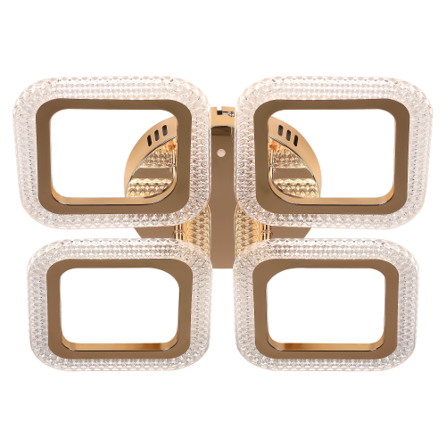 Серия стильных потолочных светодиодных светильников золотого цвета с квадратными рассеивателями и эффектным рельефным акрилом. Оснащены пультом дистанционного управления для удобной регулировки яркости и режимов освещения. Мощность моделей — от 48 до 64 Вт. Идеальное сочетание элегантного дизайна и функциональности для современного интерьера.