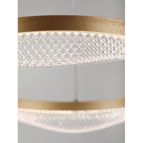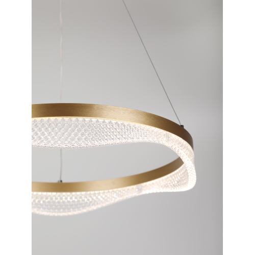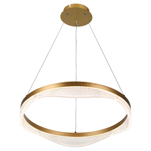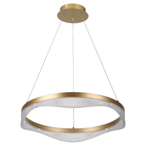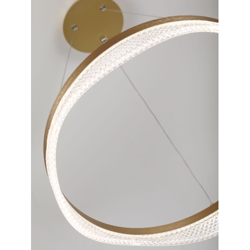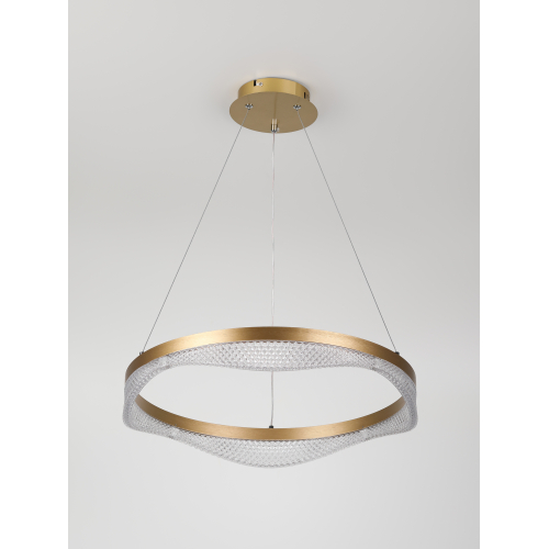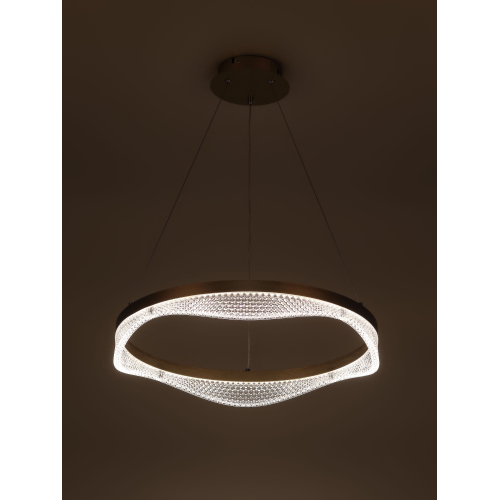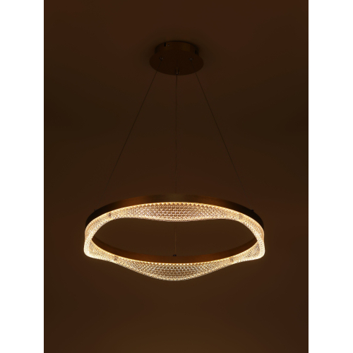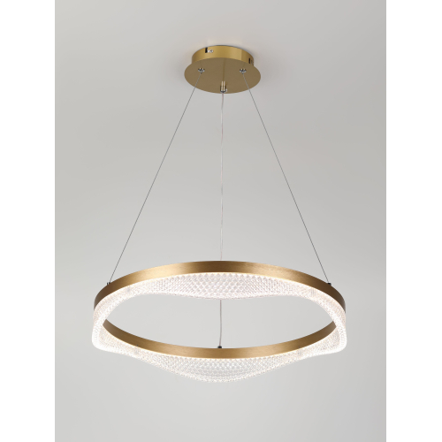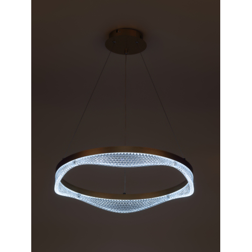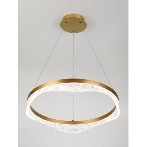 Золотой подвесной светодиодный светильник круглой формы — элегантное решение для вашего интерьера. Мощность 56 Вт, регулируемая температура света от 3000 до 6300K для создания уютной атмосферы. В комплекте пульт для удобного управления, а высота светильника легко регулируется, что позволяет адаптировать его под любые помещения.