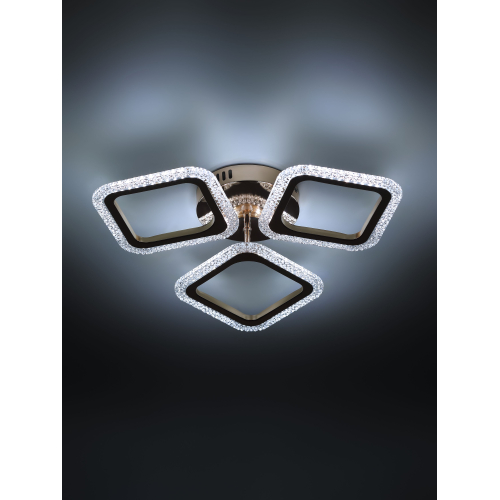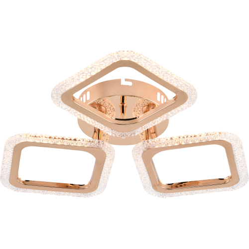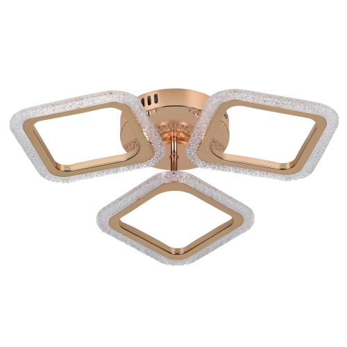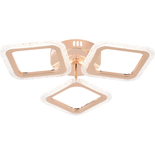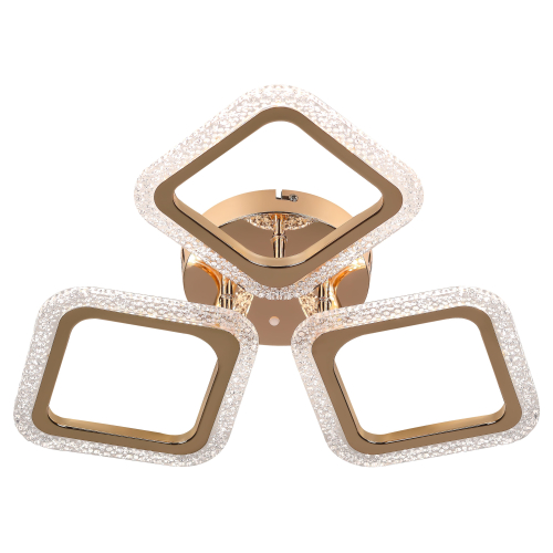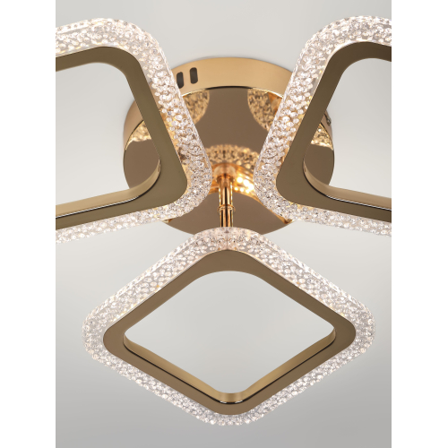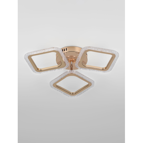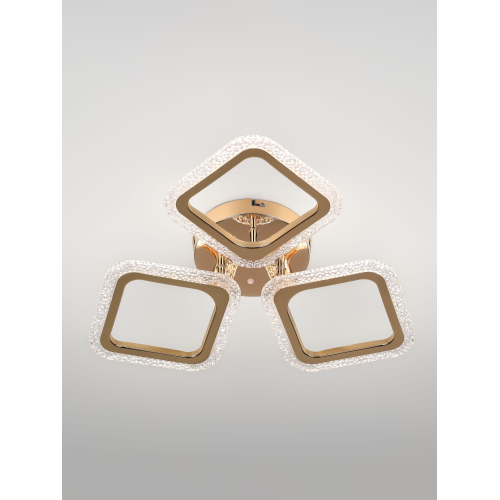 Стильный потолочный светодиодный светильник золотого цвета с квадратными рассеивателями и эффектным рельефным акрилом. Оснащен пультом дистанционного управления для удобной регулировки яркости и режимов освещения. Мощность 48 Вт. Идеальное сочетание элегантного дизайна и функциональности для современного интерьера