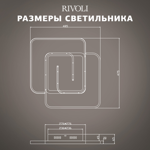 Яркая светодиодная люстра на потолок мощностью 91 Вт. Потолочный LED-светильник Rivoli Jenny (арт. 6102-103) представляет собой два светящихся квадрата контрастных цветов – чёрного и белого. Габариты LED-люстры: 485 х 475 мм. Толщина корпуса – всего 20 мм, что позволяет с успехом использовать люстры потолочные светодиодные Rivoli Jenny для невысоких потолков. В коллекции есть люстра LED светодиодная меньшей мощности – 66 Вт (арт. 6102-101).