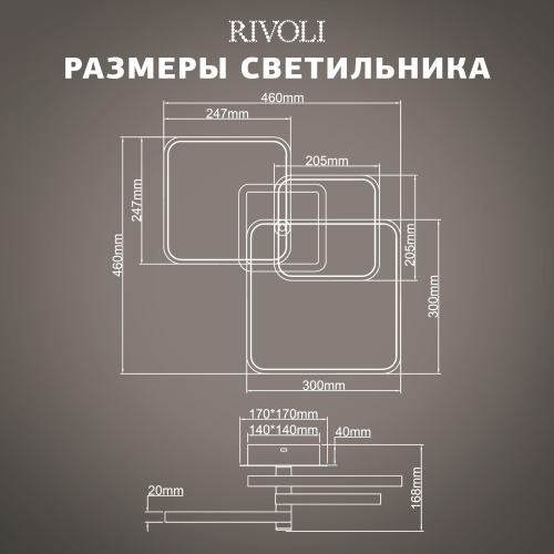 Светодиодный потолочный светильник Rivoli Milena с пультом управления в комплекте. LED-светильники — одно из самых популярных решений организации основного освещения. Это многофункциональный современный аналог традиционной люстры. В коллекции Milena итальянского бренда Rivoli представлены LED-люстры потолочные с квадратными (арт. 6141-103) и круглыми (арт. 6141-101) плафонами. Геометричный дизайн этих светодиодных люстр отлично смотрится в современных интерьерах. Актуальный чёрный цвет корпуса светильников LED потолочных Rivoli Milena позволяет создать акцентное пространство с контрастными деталями.