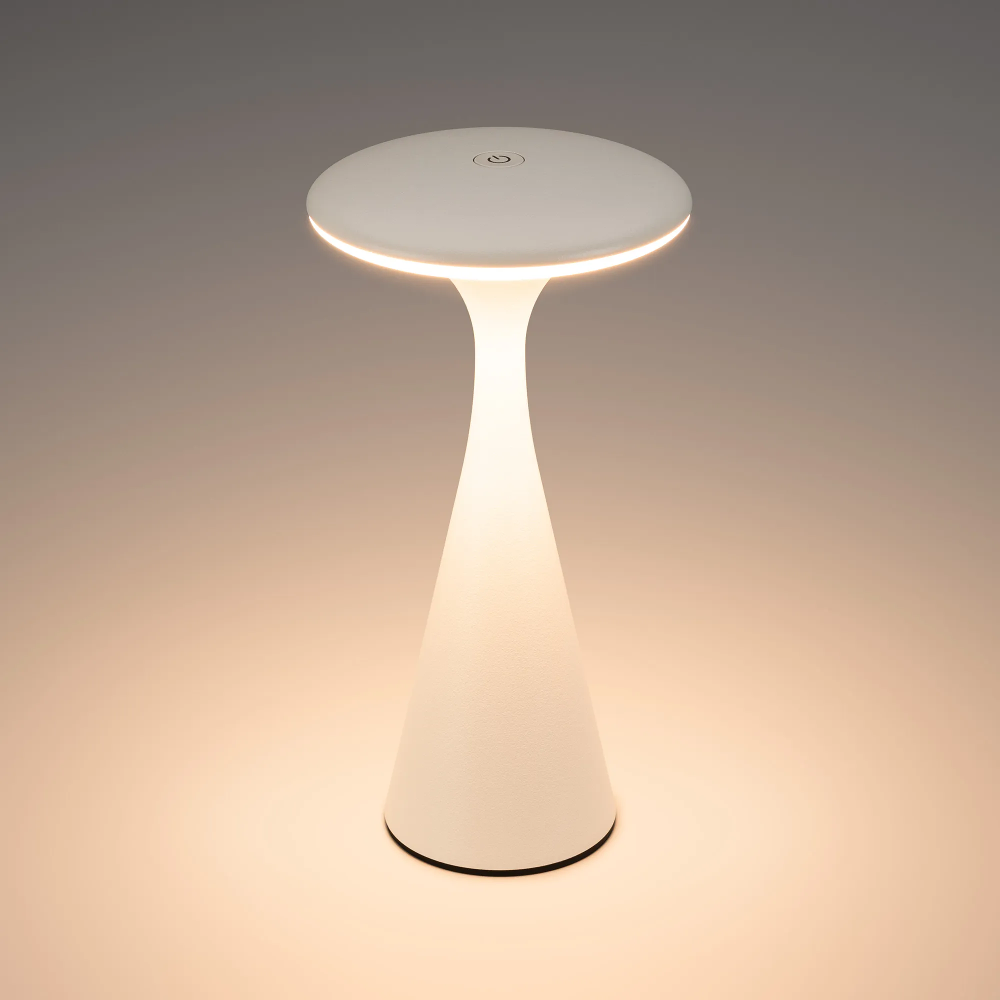Настольный светодиодный светильник COLLADA со встроенным аккумулятором 1,5 Вт. Светильник с регулируемым цветом свечения (2200-3000 К) и световым потоком 110 лм станет отличным решением для локальной подсветки. Благодаря степени защиты IP54 светильник можно использовать как в помещениях, так и под открытым небом. Встроенная Li-ion аккумуляторная батарея емкостью 2600 мАч способна обеспечить до 90 часов автономной работы светильника. Последовательное нажатие сенсорной кнопки позволяет включить/выключить светильник и выставить нужный уровень яркости и цвета свечения. Зарядка осуществляется через герметичный USB-порт. Зарядный кабель входит в стандартный комплект поставки.